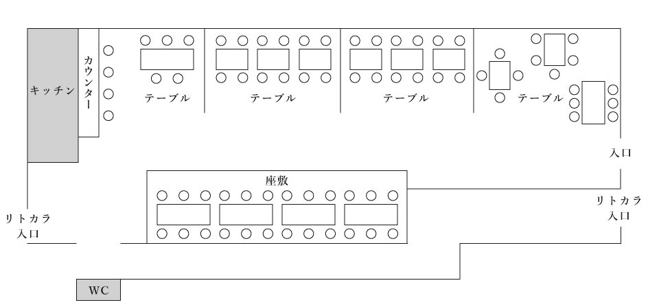 りときやでは、座敷・テーブル・テラスをご用意しております。 ゆっくりとお過ごしいただけるよう、ゆとりのある空間づくりをしていますので、お仕事帰りの夜ご飯、ディナーにも最適。 大人数でのお集まりの際は、最大80名様まで貸切も承ります。